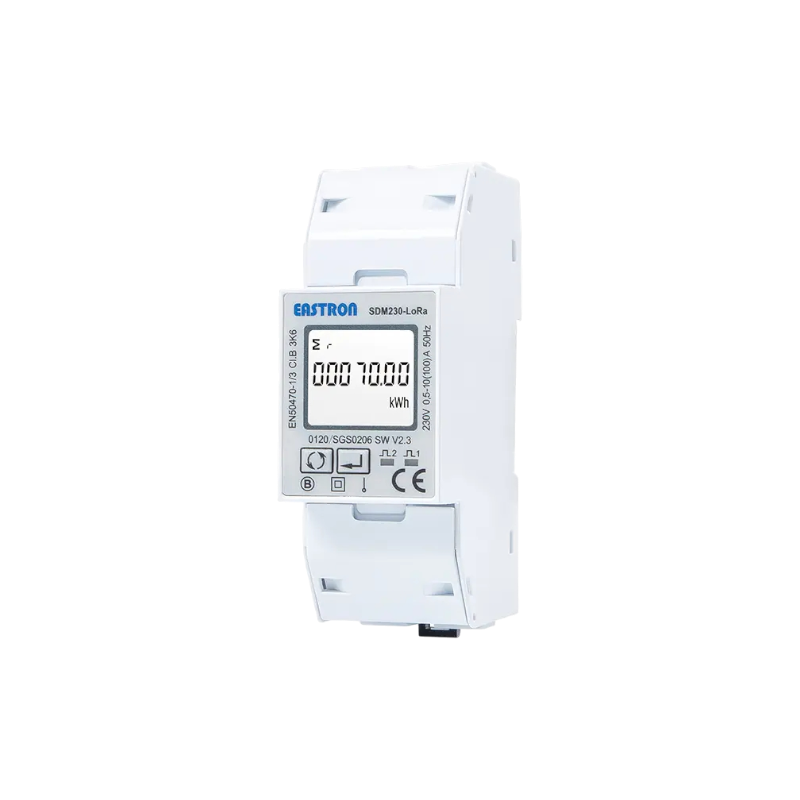 The Eastron Single-Phase LoRaWAN Multifunction Energy Meter provides precise, real-time monitoring of electrical parameters for residential, commercial, and light industrial applications. This compact DIN-rail mounted device measures voltage, current, active and reactive power, apparent power, power factor, and energy consumption with high accuracy. It supports multiple measurement modes, including total energy, tariff-specific energy, and peak demand, making it ideal for energy auditing and cost management. With LoRaWAN 1.0.3 Class A wireless connectivity, the meter transmits data reliably over long distances without the need for complex cabling, enabling seamless integration with SenseCore IoT platforms for centralized monitoring and reporting.