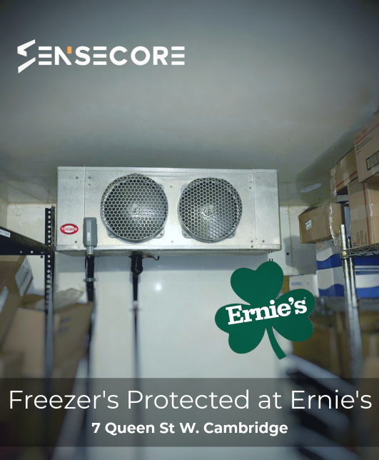 SenseCore completed a wireless temperature and humidity monitoring deployment at Ernie’s Cookhouse in Cambridge, Ontario, installing sensors across freezer and storage areas at 7 Queen St W to provide real-time environmental monitoring and instant alerts. With continuous tracking of both temperature and humidity levels, Ernie’s can proactively prevent product loss, maintain food safety compliance, and protect inventory — all while staying focused on delivering the great food and welcoming atmosphere the Cambridge community has enjoyed for years.